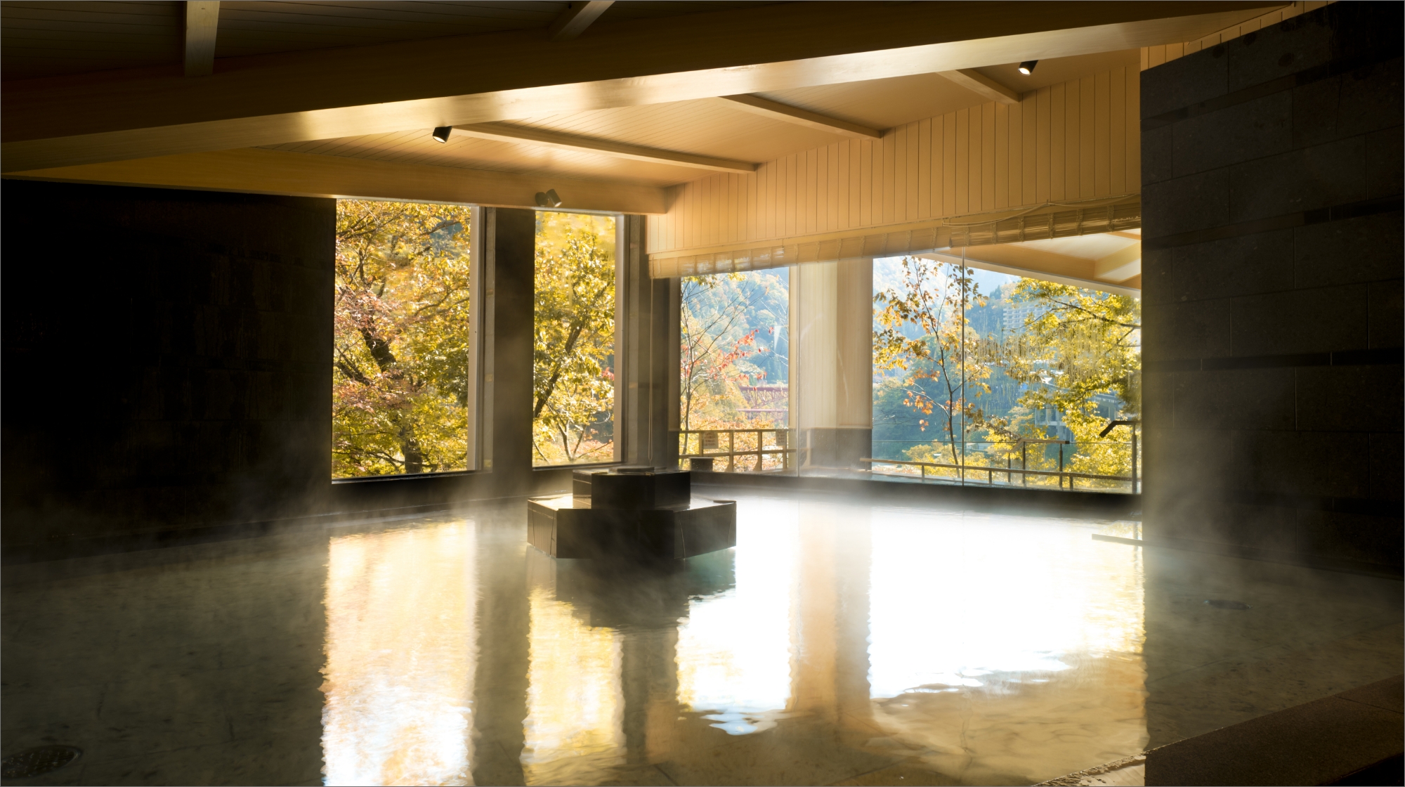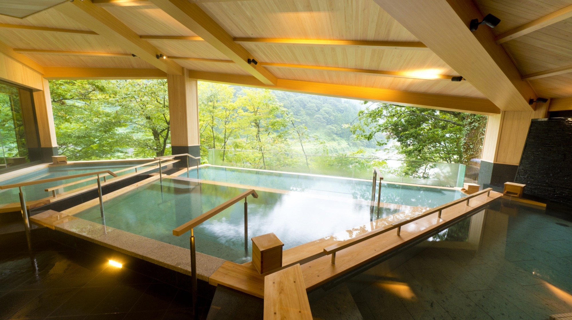 美肌で名高い宇奈月温泉をお楽しみいただけます。内湯は、石、天然木、和紙、組子などの日本の「和」の特徴を取り入れ、寛ぎに満ちた和モダンな空間を提供いたします。