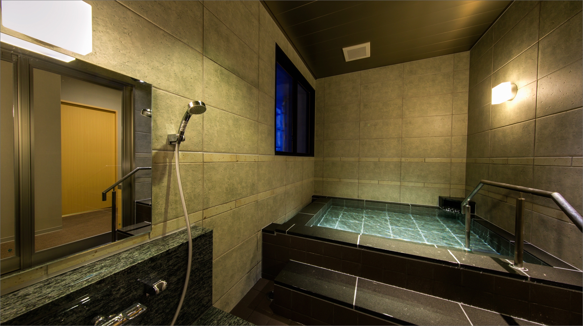 湯船に棚田状の段差をつけることにより、 各段から異なる景色をご覧いただけます。